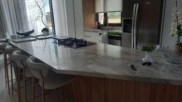 Escada em Mármores, Diversas Cores; bancada de cozinha em granito, quartzo branco, mármore branco paraná. Curitiba São José dos Pinhais